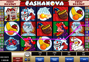 Автомат Казанова состоит из пяти барабанов. На тридцати доступных позициях разыгрывается джекпот в размере 37 500 кредитов. На геймплее представлены хорошо продуманные тематические элементы, в числе которых три символа с расширенными возможностями: