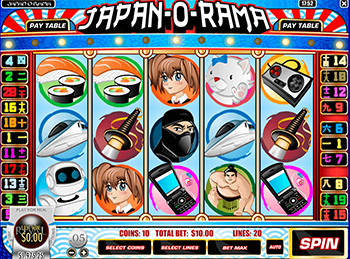 Japan-O-Rama – японский игровой автомат. Японским его можно смело назвать, посмотрев на игровые символы: суши, ниндзя, японская девчушка-подросток, сабля, мобильные телефоны, магнитофоны и робот. Все они напрямую относятся к Японии, являясь или традиционными блюдами, или оружием, или технологическими прорывами.